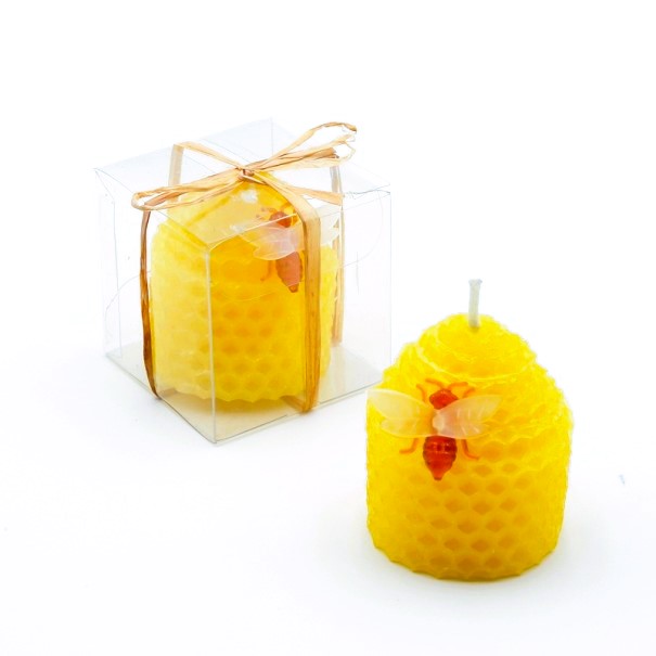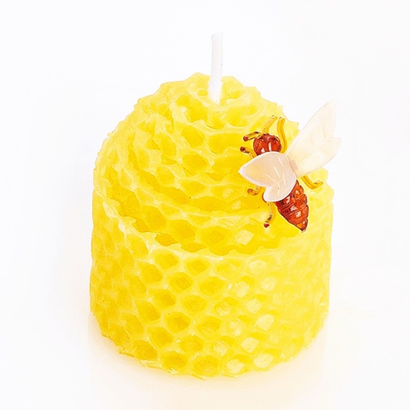 - Vela panal de abejas de cera natural con decoración de abeja.