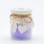 • Las velas aromáticas van en un original recipiente de cristal con tapa de tela, cuerda para cerrarlas y un bonito detalle de corazón.
